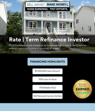 At PCG Capital, we reward you for helping your clients access competitive real estate financing — whether it’s fix-and-flip, bridge, rental, or construction loans. Simply refer your clients to us, and when their loan closes, you get paid 50% of the earned commission (less a $500 per closed file processing fee)